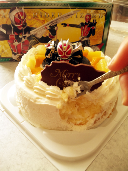 憧れのホール食いですよ!でも、半分食べたところでママンとパパンと弟におすそ分けしました。