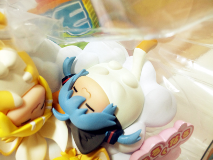 高さ14センチ。なので、右側のミクさんのお顔なんて、私の親指の爪部分の大きさだったりします。