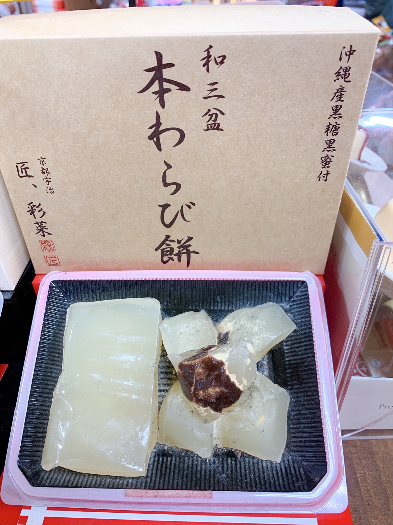 好評といえば、今回じゃんけん大会に出した「京都宇治の和菓子専門店「匠、彩菜」の本わらび餅」※写真は見本