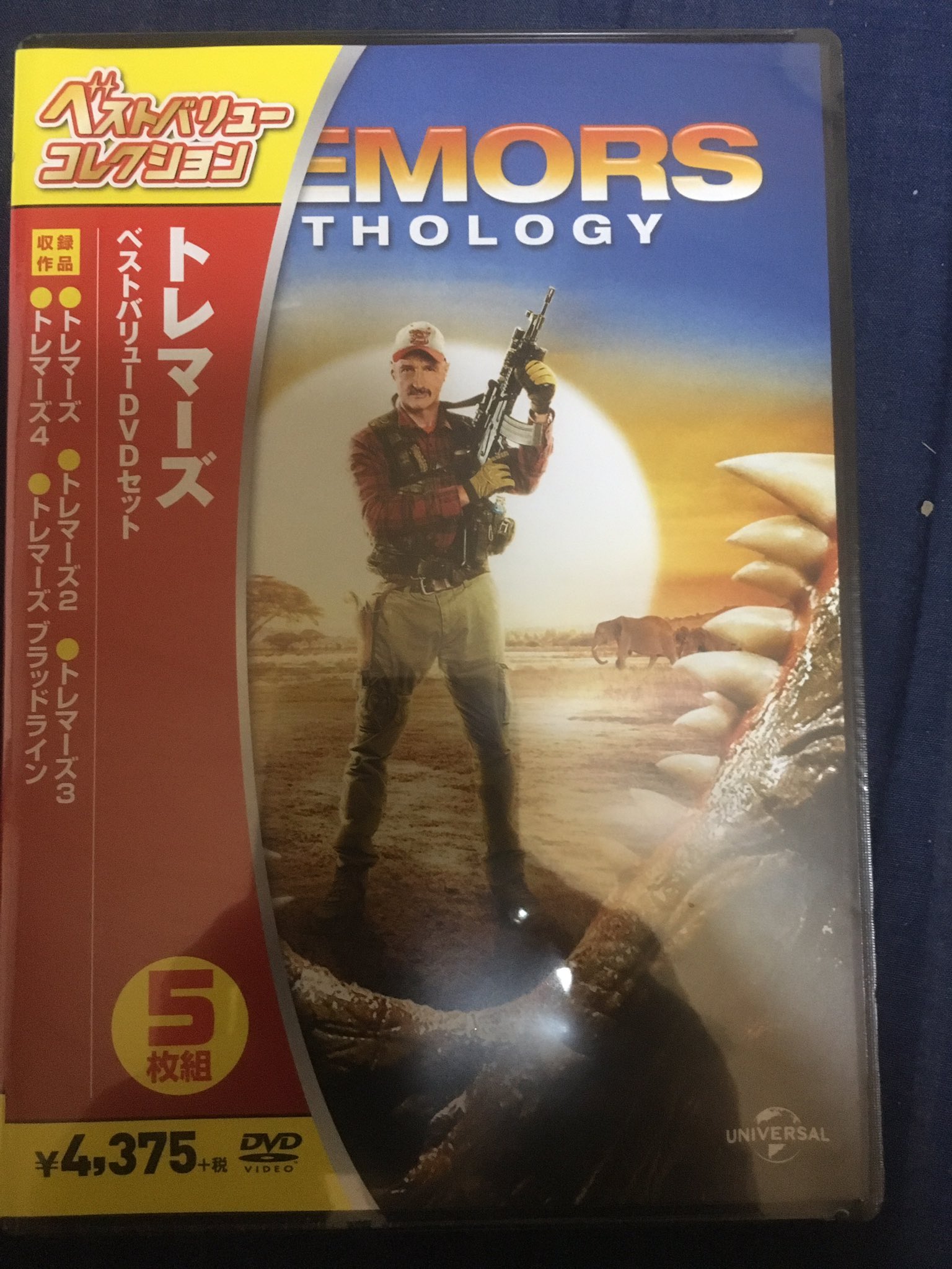 「トレマーズ」DVD-BOX!地中を這い回り音や振動に反応して人間を襲う「グラボイズ」というモンスターと、それと戦う人々を描くシリーズです。1作目のみ、大作からインディペンデント映画まで幅広く出演する名優ケビン・ベーコンが主演しているので名前くらいはご存知の方もいらっしゃると思います。