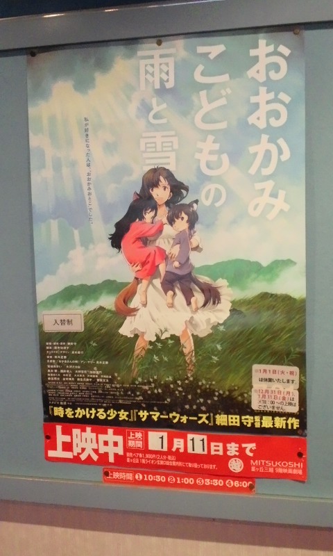 この日上映していたのは細田守監督のアニメ映画「おおかみこどもの雨と雪」。Blu-rayリリース前にギリギリ観る事が出来ました(笑)