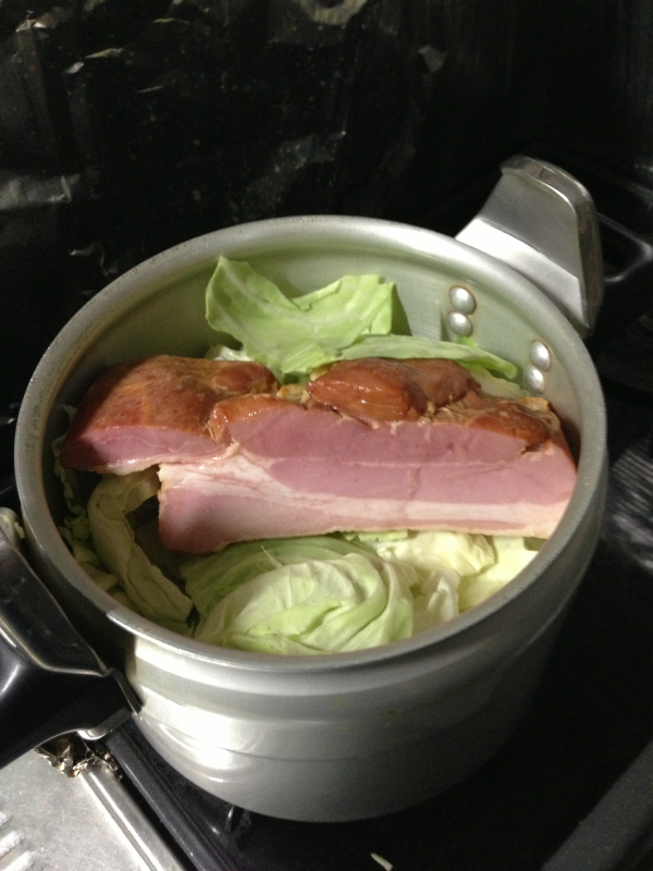 今回はベーコンですが、生の三枚肉の塊でもうまいですし、豚肉の塊なら何でもうまいです。