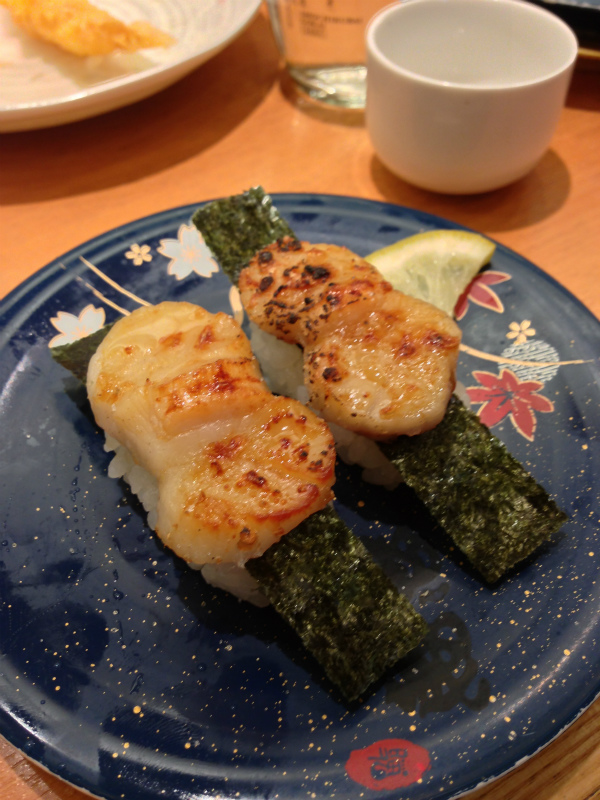 今週は敬老の日に行ったカイテン・スシバーの炙りホタテでござる