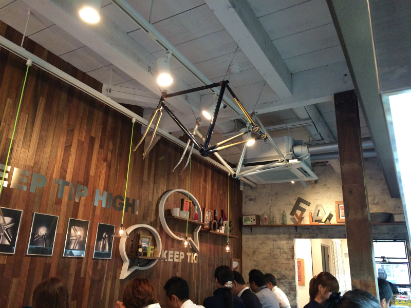 店のコンセプトなのか、随所にロードレース用自転車のパーツが使われていて、女性連れでも非常に入りやすい感じです。