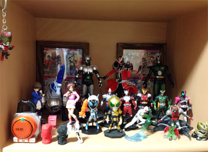 本当は、ひとつの棚はミクさんばかり飾る予定だったのですが、思った以上に特撮のフィギュアが増えてしまいました。