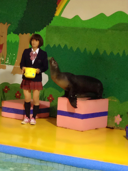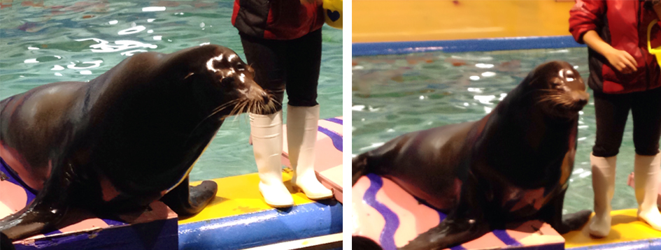 男の子のアシカ君と女の子のアシカちゃんがアピールするので、良いと思ったほうに観客が拍手するという内容でした。