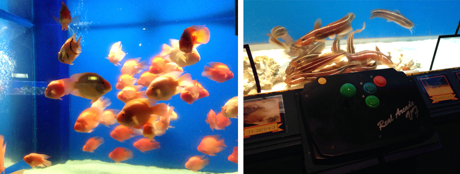 綺麗なお魚さんに、バーチャファイターのコントローラー、セイウチさんと写真も撮りましたヾ(*'ω'*)ノ