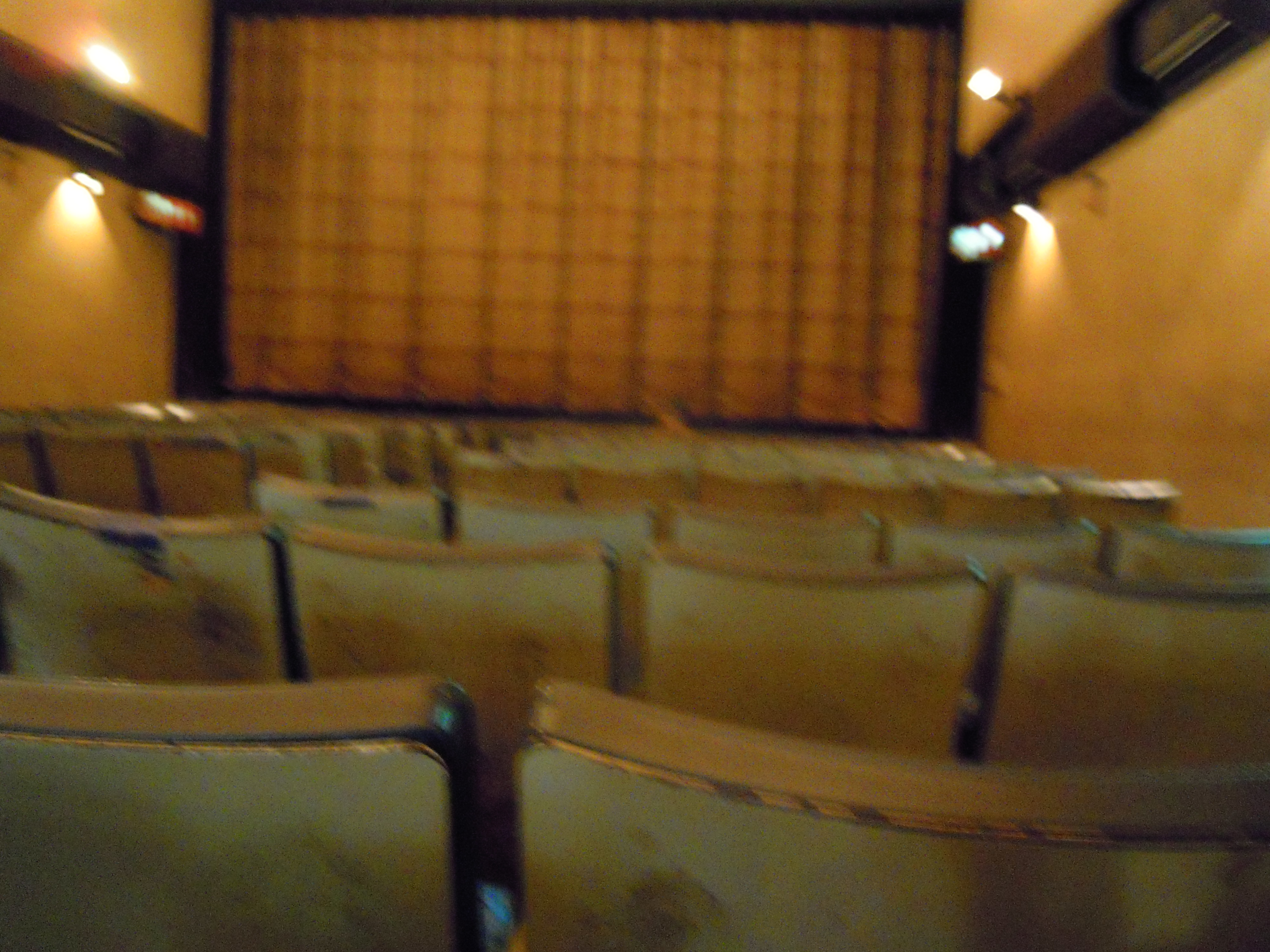 場内の様子はこんな感じ。席数は192席。古い映画館らしく、その座席のほとんどに修繕の跡があります。上映前にはスピーカーから昭和歌謡が流れ続け、今が21世紀だという事を忘れそうです。