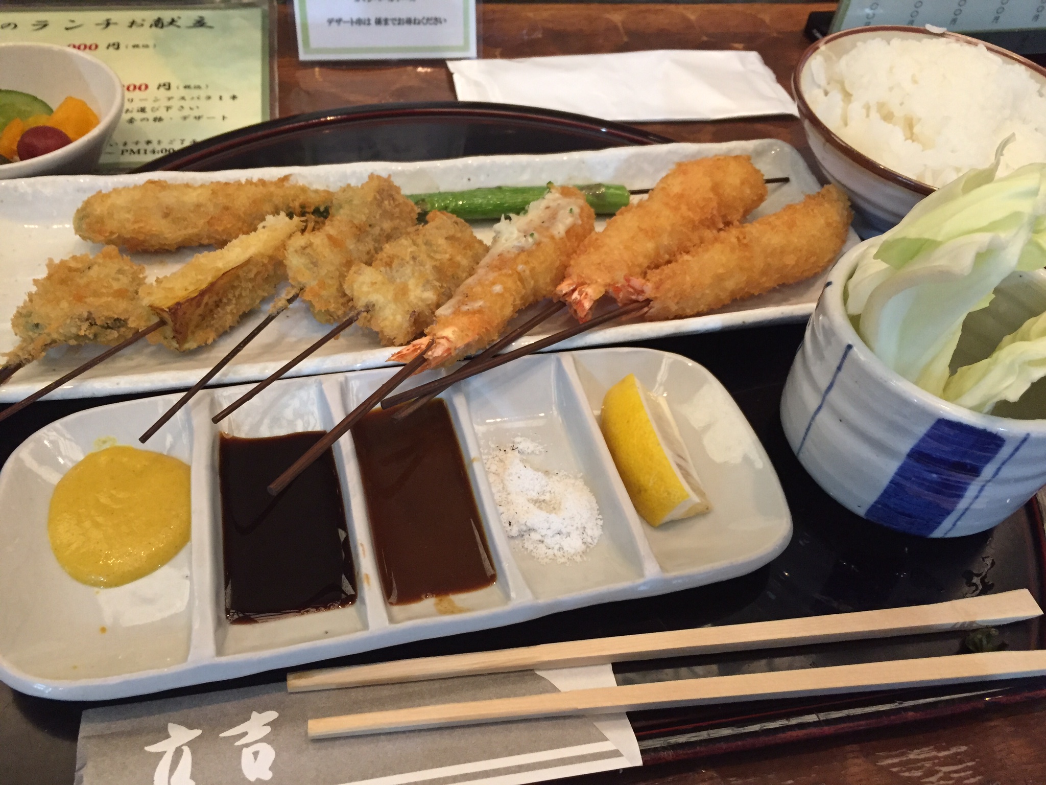 夜はメニューがなくて、季節の串揚げが自動的にお任せで出てくるというちょっと高級そうなお店ですが、昼はランチが結構お得に食べられます。