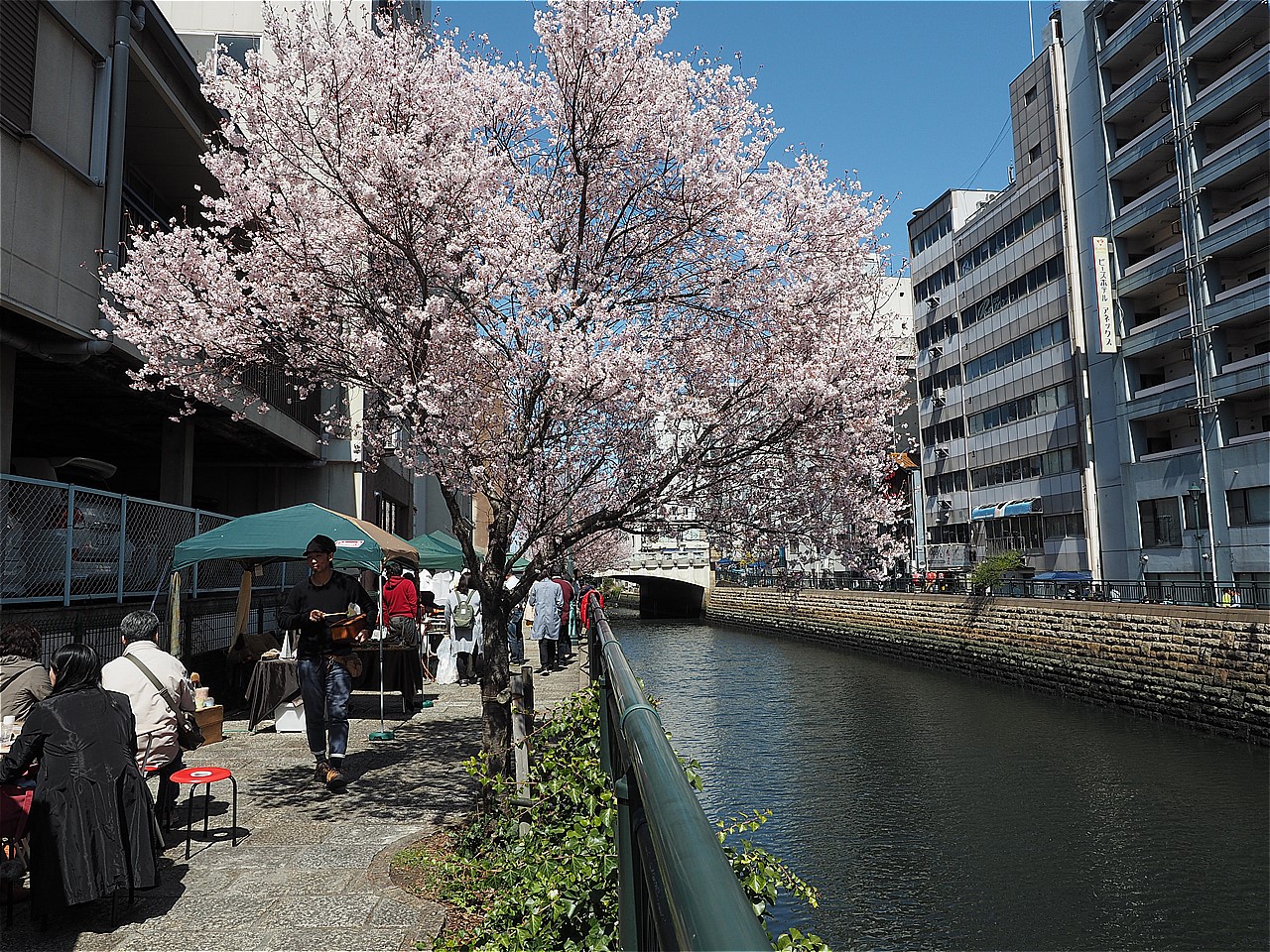 堀川沿いの早咲きの桜は満開。