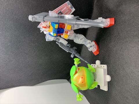 で、作ってみたんですが、EGはエントリーというくらい、これからガンプラ始めませんか?というシリーズなんですが、正直スタンダードモデルではあるHG(ハイグレード)と同等が昔のキットと比べたら、それ以上だと思います。さすが40年の技術力は大したもんです。くじでハロも当たったんで作りましたが、メンバーたちと作ったガンプラ部というLINEグループでの宿題のハロはまだ作ってなかったり…。そちらは次の歌会のときにロビーに展示予定となってるので、お楽しみに(?)